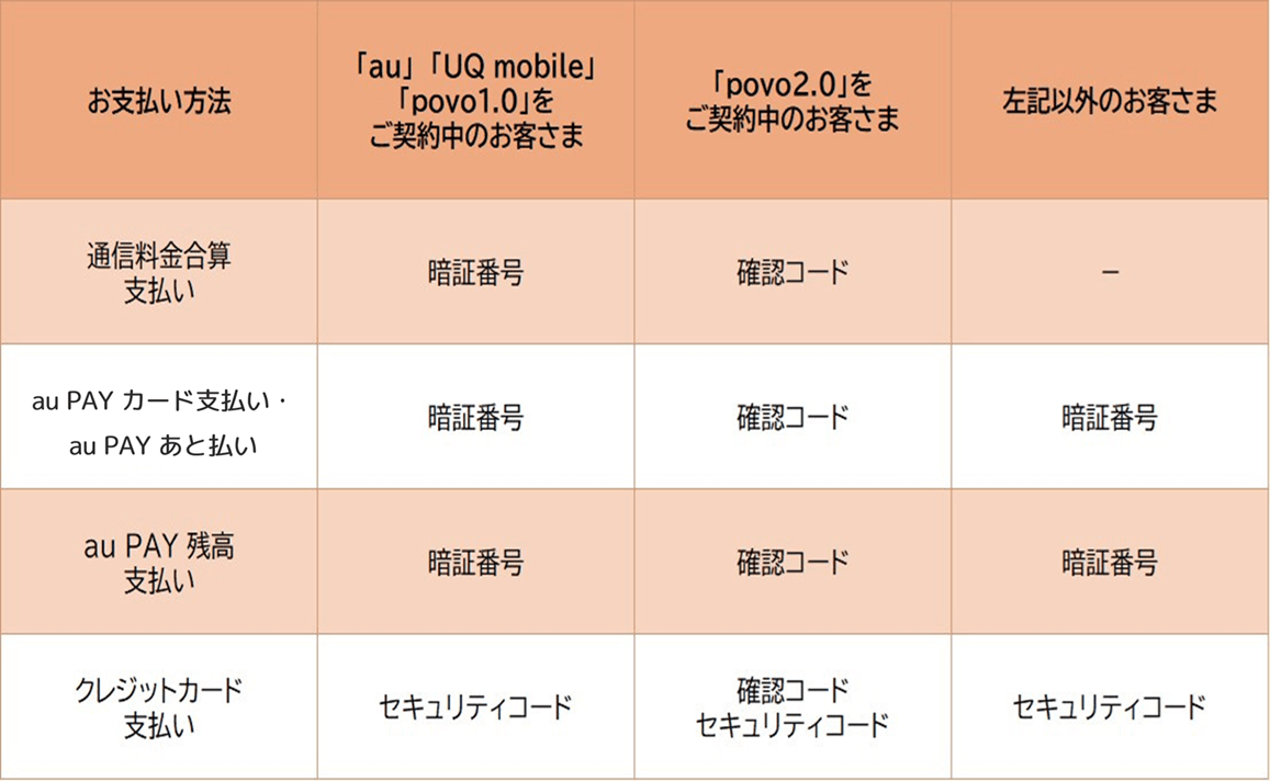 ・確認コード・・・au PAY(auかんたん決済)ご利用時にSMSで送付されます。